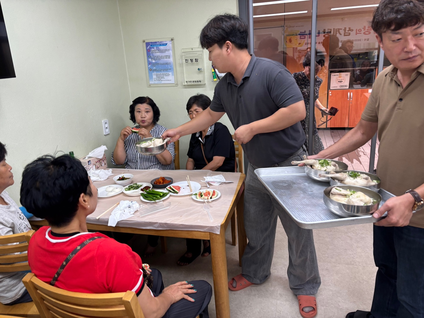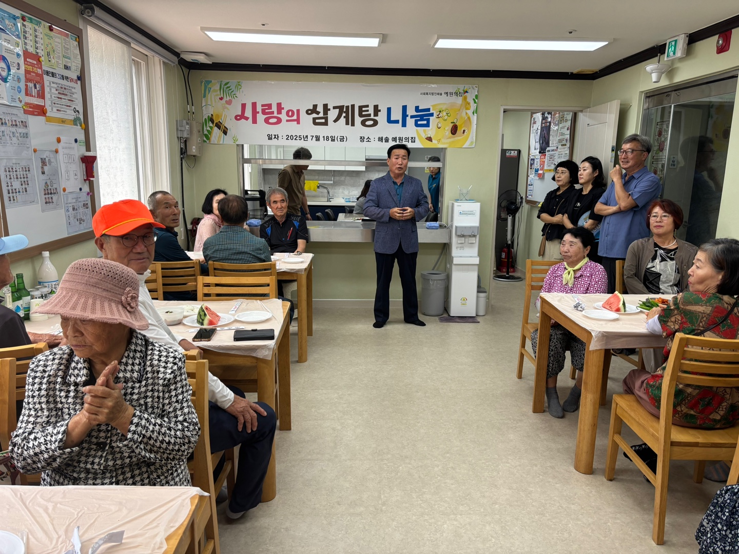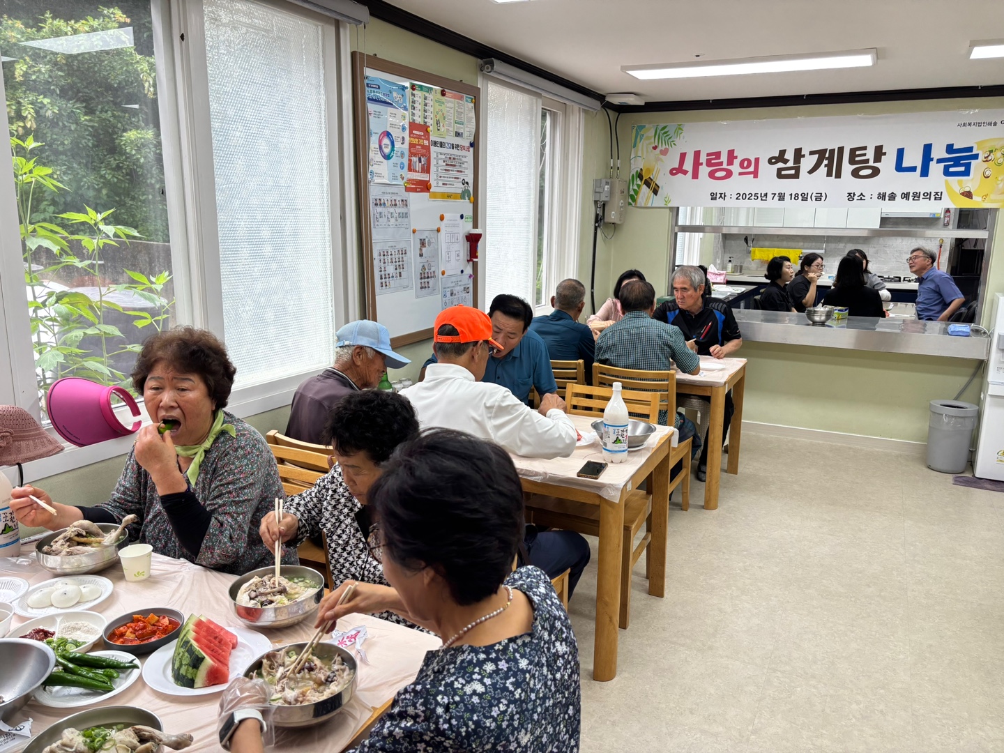 7월 18일, 다가오는 초복을 맞아 지역 주민 어르신들을 초청하여 '사랑의 삼계탕 나눔' 행사를 진행하였습니다. 이번 행사는 지역 사회와의 유대감을 강화하고 어르신들이 무더운 여름을 건강하게 보내시기를 바라는 마음에서 마련되었습니다.